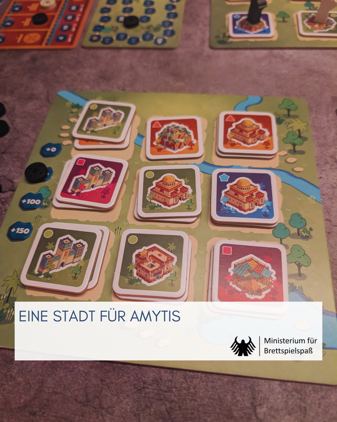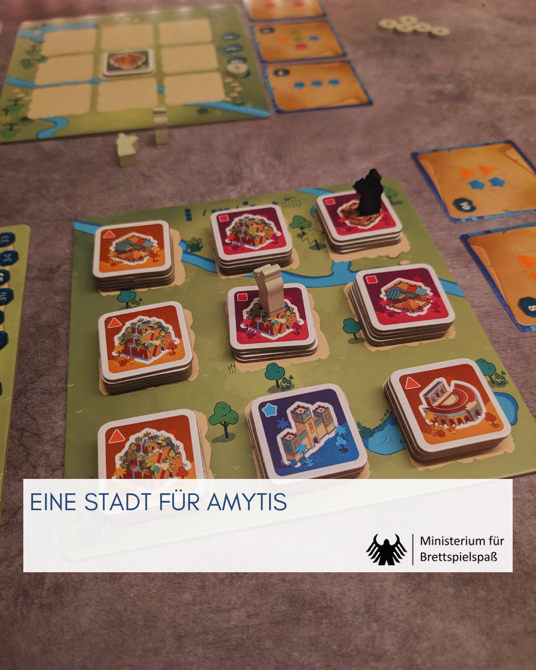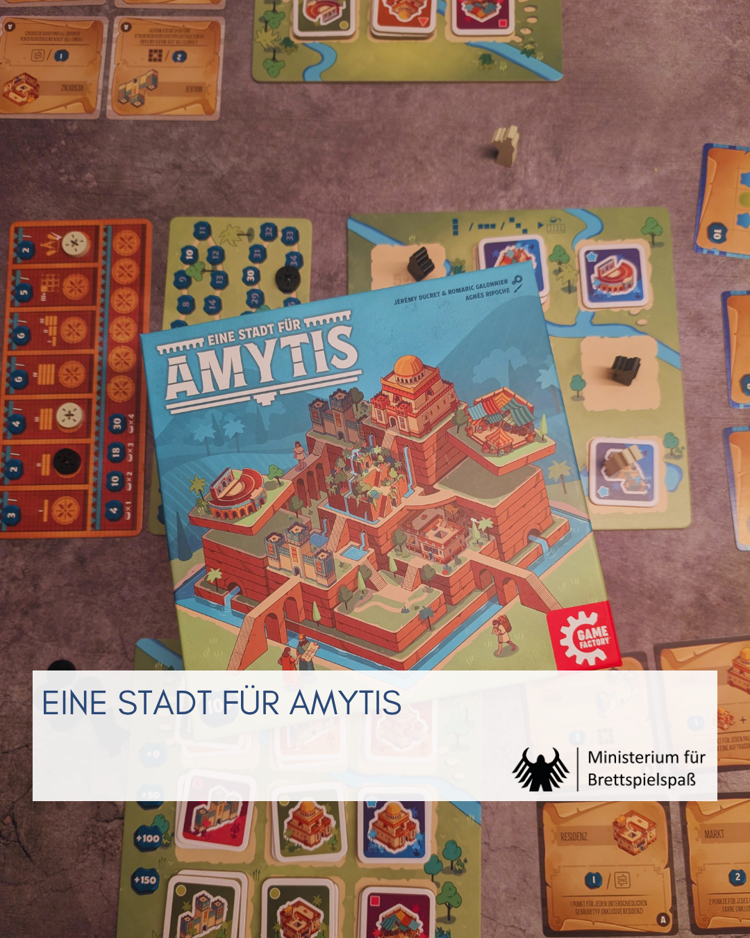Diese Legende bildet den Rahmen für EINE STADT FÜR AMYTIS, die neue Zwei-Personen-Veröffentlichung von GAME FACTORY. Das Spiel nimmt sich dieses antiken Stoffes nicht erzählerisch, sondern strukturell an: als Ordnung, als System, als Versuch, Schönheit und Kontrolle (über Punkte) in Einklang zu bringen.