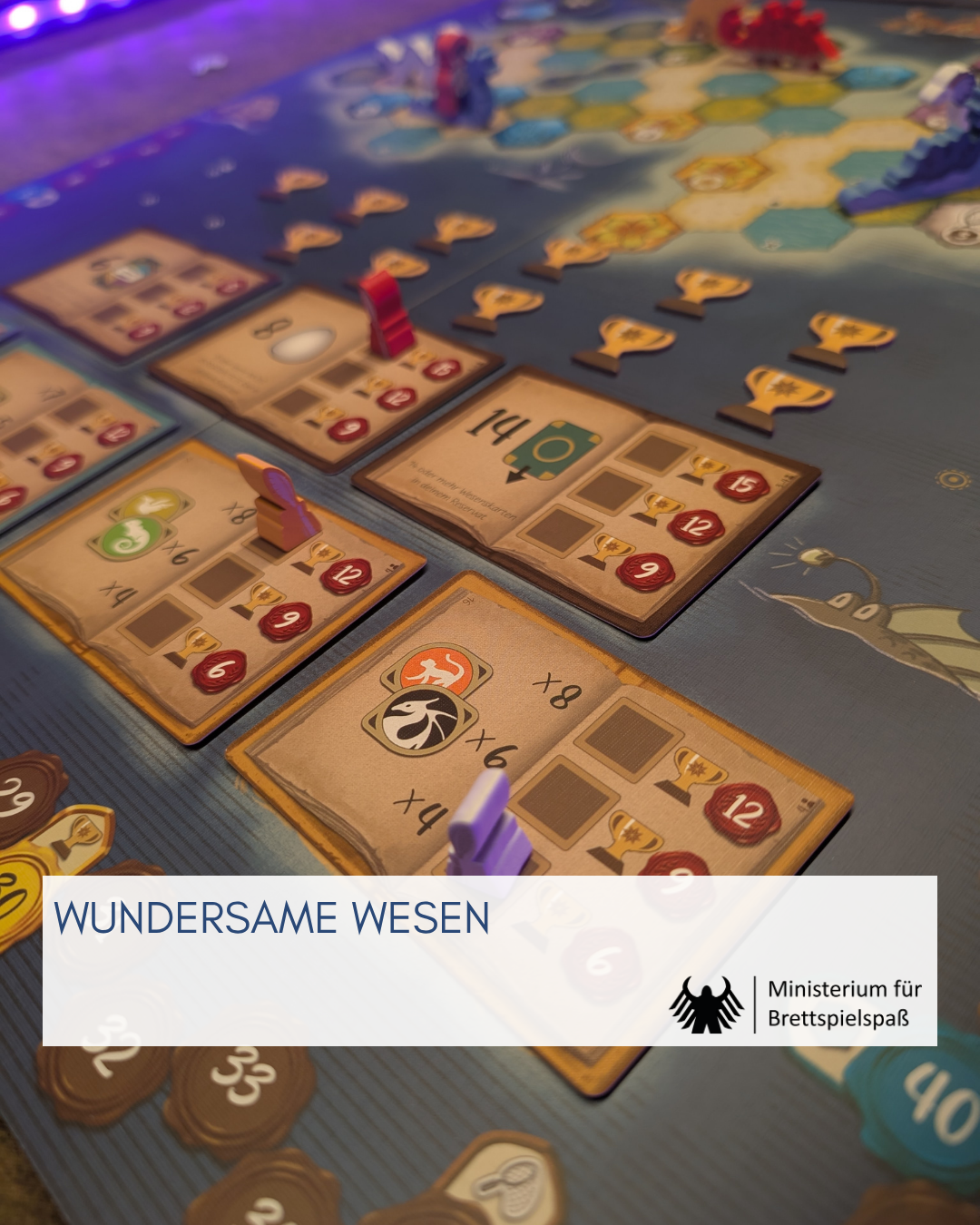 Ich bin mir sicher, dass WUNDERSAME WESEN durch sein herausragendes Material Anhänger finden wird. Für mich jedoch blendet es mehr, als es begeistert. Vielleicht ändert sich das durch die beiden Erweiterungen, doch diese sind derzeit schwer erhältlich – und so beziehe ich meine Bewertung ausschließlich auf das Grundspiel.