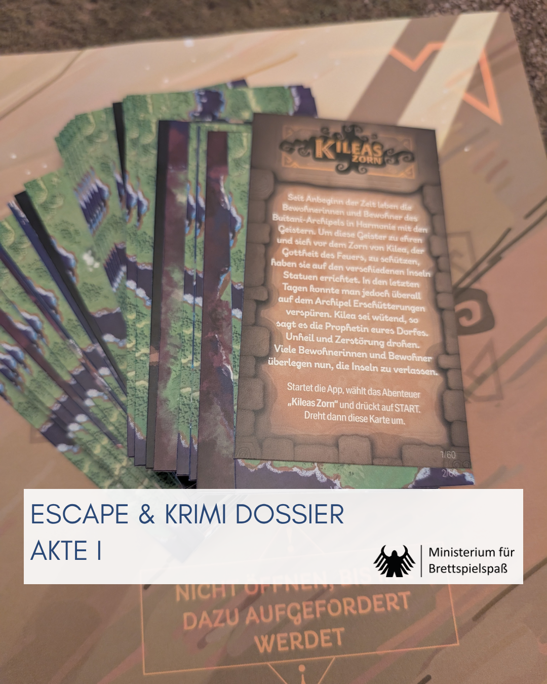 Wie üblich umfasst die Box drei Fälle. KILIAS ZORN nimmt mich mit auf eine Insel. Ein Vulkanausbruch droht diese zu zerstören und ich muss die Gottheit des Feuers besänftigen. Ungewöhnlich ist bei diesem Fall ist, dass ausnahmsweise mehr Material zum Einsatz kommt als sonst. Ansonsten bietet er aber ein nettes durchschnittliches Abenteuer mit allerhand gut lösbaren Rätseln. Und wenn es mal nicht weiter geht, dann hilft hier auch die App.