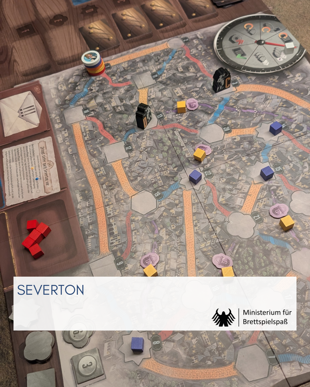 Eine Karte, über die sich bewegt werden muss, Truppen, die eine Gefahr darstellen und Karten, die für Aktionen und Bewegungen verwendet werden. Der Vergleich zwischen SEVERTON und PANDEMIC drängt sich auf. Doch wo PANDEMIC die kalkulierte Eskalation zur Triebfeder des Spiels macht, dreht sich das Spielgefühl in SEVERTON fast ausschließlich um Vermeidung. Auch strategische Entscheidungen dienen vorrangig diesem Zweck. PANDEMIC eskaliert durch den Zuwachs an Gefahren. Dies ist bei SEVERTON ähnlich, wo mehr Truppen ins Spiel kommen. Dennoch fühlt sich der Rundenverlauf gleichförmiger an. Exponentielles Wachstum, wie bei PANDEMIC, gibt es auf dem kleinen Plan nicht. Und auch das strategische Element, das PANDEMIC durchs Kartenzählen einführt, fehlt.