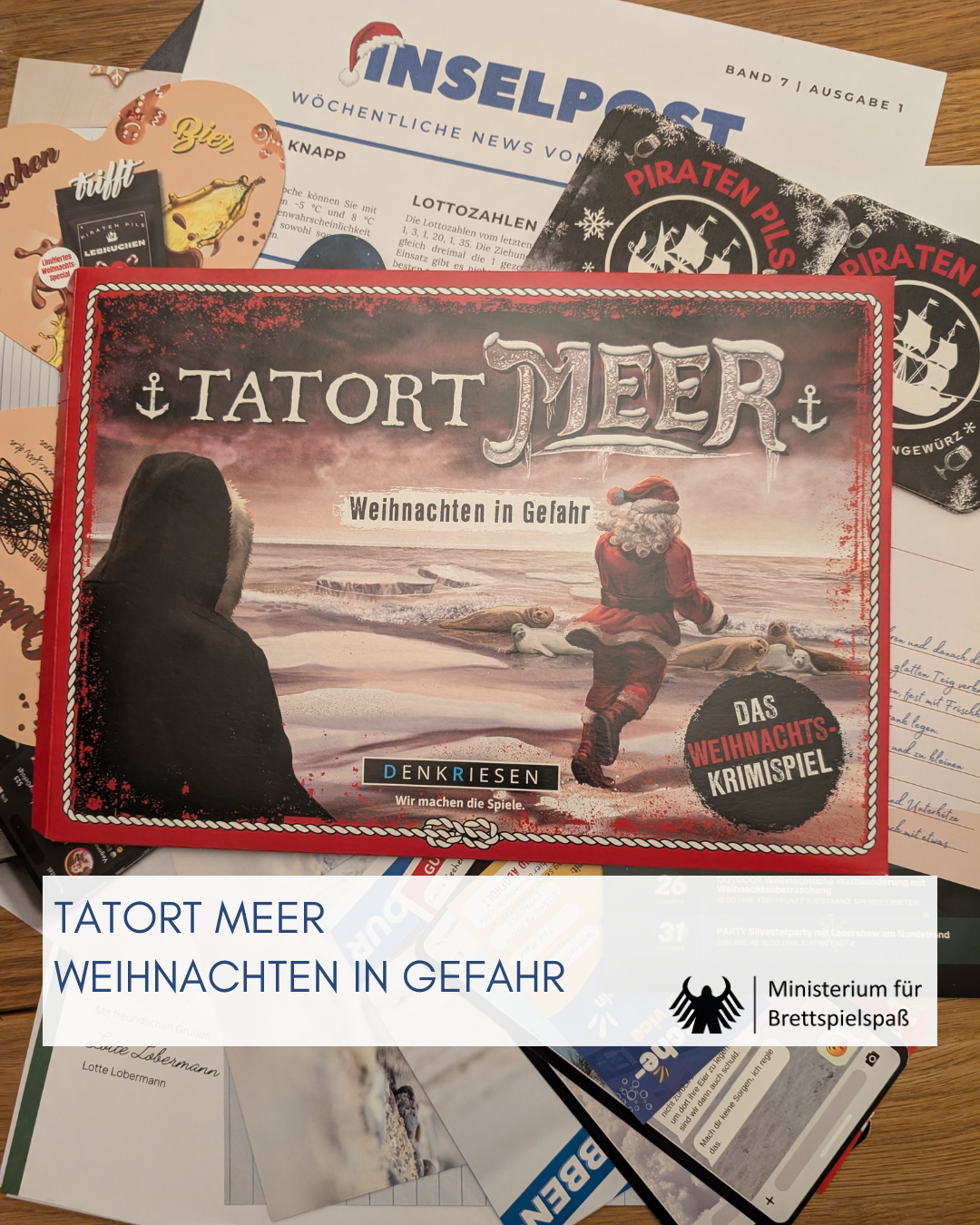 Die Spiele des noch jungen Verlags PLANET A habe ich erst auf der SPIEL kennengelernt. Die beiden Vanlifer Dorothee und Jonas sind mit ihrem Hund Martini seit 2020 in ganz Europa unterwegs und finanzieren ihr Leben mit der Entwicklung von Spielen, die mittlerweile auch über DENKRIESEN vertrieben werden. Die Themen Nachhaltigkeit und Meer spielen in ihren Fällen oft eine Rolle. So auch beim Titel WEIHNACHTEN IN GEFAHR, den ich am vierten Advent mit meiner Frau gespielt habe.