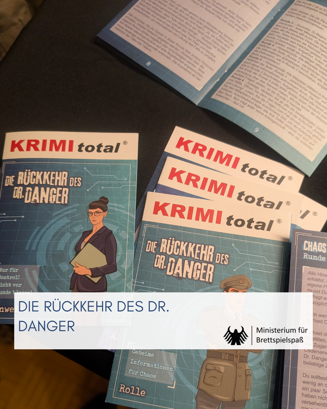 Das heutige Dossier ist etwas kürzer als gewohnt. Zwar ist die Weihnachtszeit nicht friedvoller als sonst, aber die Erinnerungen an die Krimi-Runde DIE RÜCKKEHR DES DR. DANGER sind frisch. Und wann könnten Spiele mit weihnachtlichem Thema (WEIHNACHTEN IN GEFAHR und der EXIT ADVENTSKALENDER) aktueller sein als zu den Feiertagen?