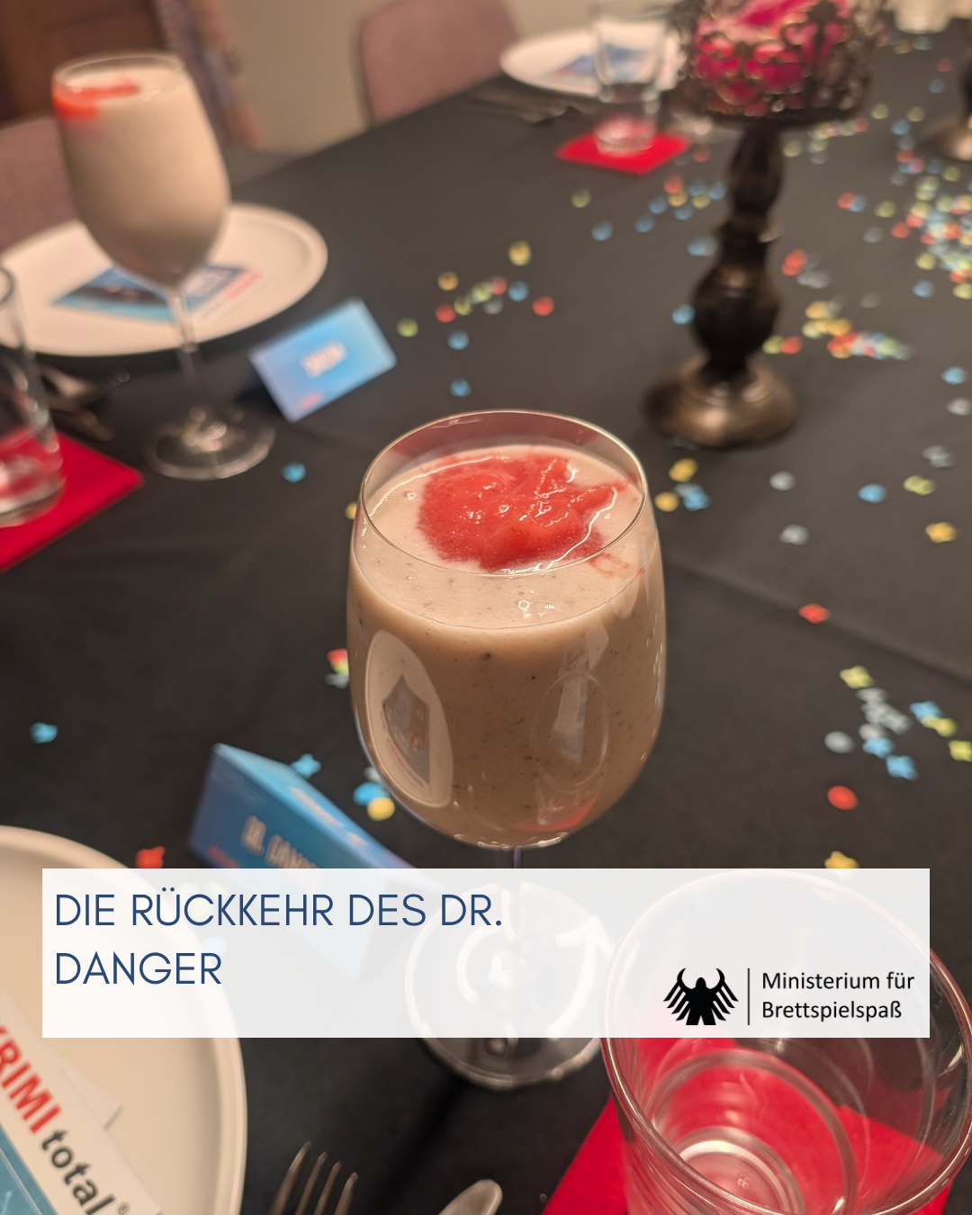 Die Vorbereitung gestaltete sich mühsam. Materialien sind auf der Website nur nach einer Registrierung zugänglich, wobei das digitale Portfolio lückenhaft ist. Menüvorschläge habe ich zum Beispiel vermisst. Vielleicht ist die Beschreibung auf der Website auch nur nicht korrekt. Ein „[KRIMIDINNER FÜR 5 bis 6 PERSONEN]“, ist die RÜCKKEHR DES DR. DANGER aus meiner Sicht jedenfalls nicht. Mehr ein Krimispiel für Gruppen. Schon die Rundenstruktur widerspricht der Logik eines Dinners: Wo Mitbewerber meist in drei Akten (Vorspeise, Hauptgang, Dessert) gliedern, beinhaltet dieser Fall sieben Runden. Und bei diesen gab es weder inhaltlich noch strukturell etwas zum Beißen.