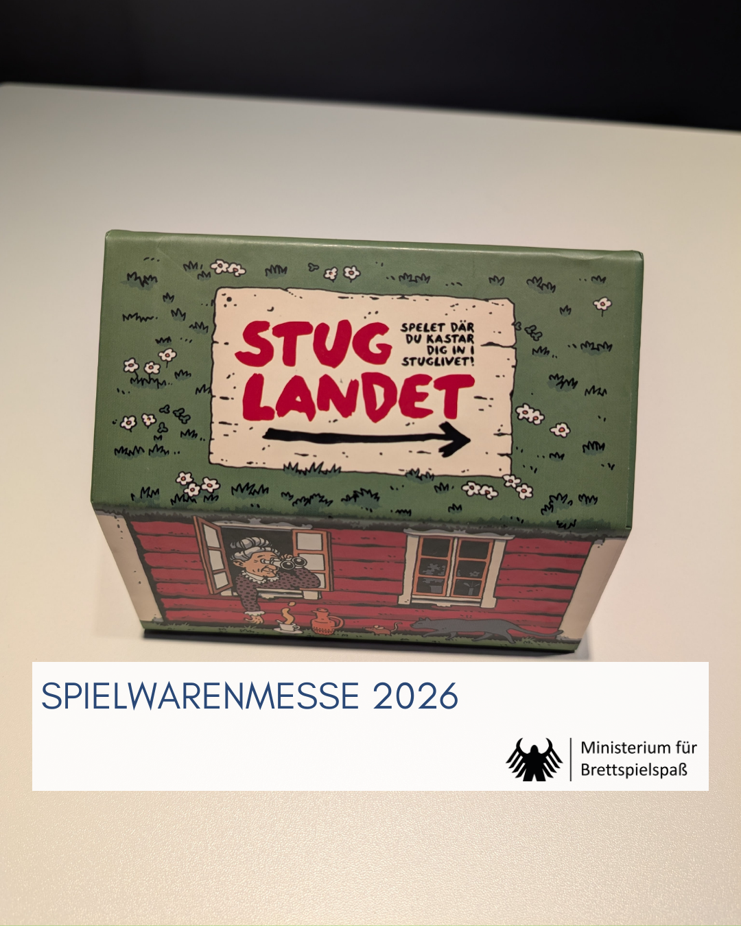 Als Nächstes liefen wir einmal fast komplett über das Gelände, um zu HABA zu kommen. Mit einem starken Kindersortiment ist das naheliegend, verschleiert jedoch ein wenig die Tatsache, dass HABA versucht, auch im Familienspielsektor mehr Fuß zu fassen. NATURE war hierfür ein Indiz des letzten Jahrgangs. In diesem Jahr kommt unter anderem STUGLANDET dazu, bei dem ich mit Häusern(!) würfeln darf. Danach wird die schwedische Idylle durchbrochen, die mich grafisch latent an PETTERSON UND FINDUS erinnerte, denn das Spiel ist ein knallhartes Area Control-Spiel.