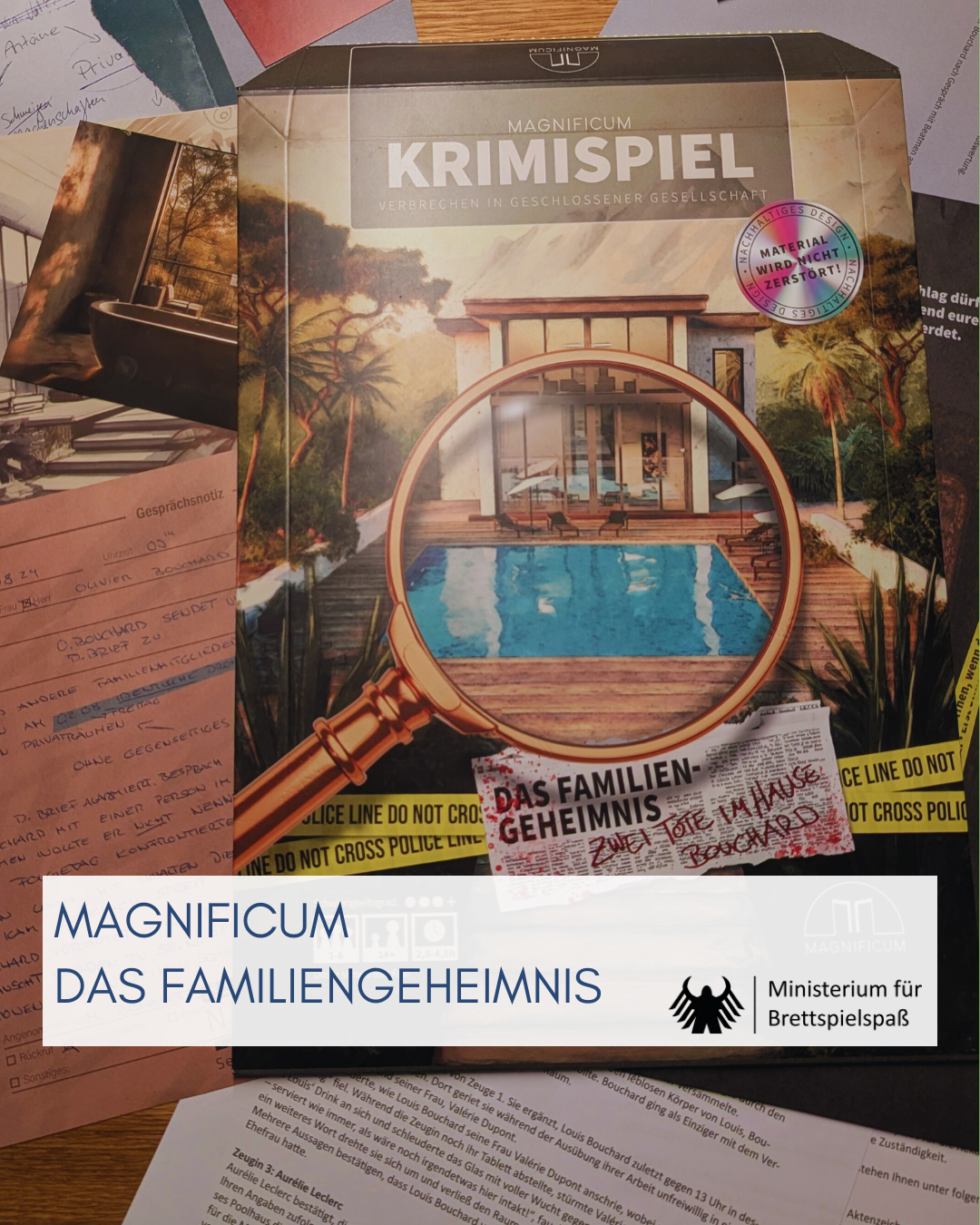 Wenig Nachschub bei den Escapes, dafür umso mehr Krimispiele, die wir von der SPIEL mitgebracht haben. Bei HIDDEN GAMES brauchte Kommissar Hahnke gleich zweimal unsere Hilfe. Nein, also er brauchte sie natürlich nicht, aber er ließ uns an seinen Erfolgen teilhaben. Und beim längsten MAGNIFICUM-Fall ging es in die Welt der Reichen.
